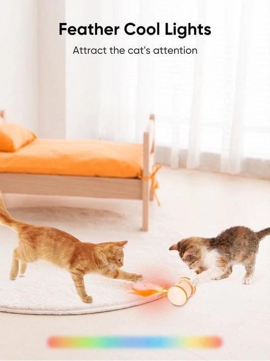 Automatic Cat Toy, Interactive Cat Toy Cat Exercise Rolling Toy Cat with LED Light & Replable Feather, Indoor Cat Ambush Toy 360° Rotating, Rechargeable Electric Kitten Toy